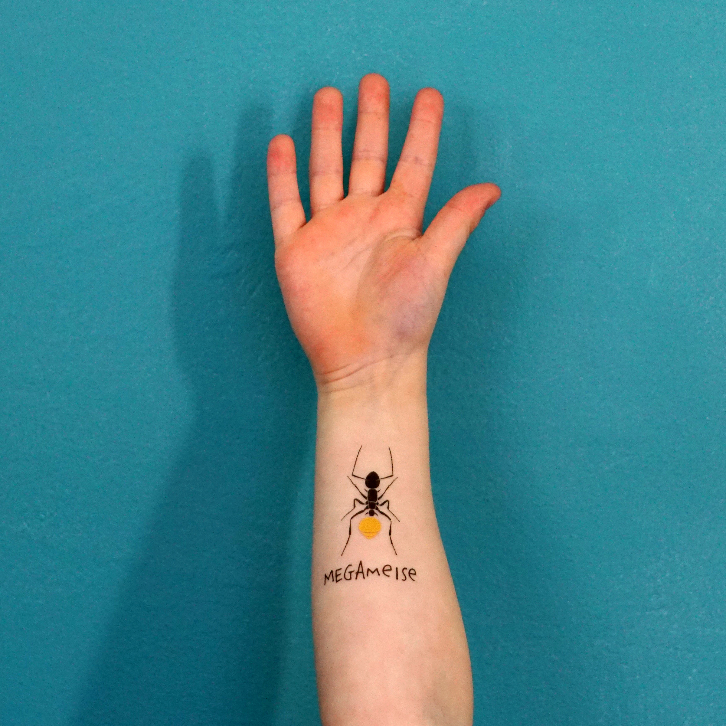 Hey, hast Du vielleicht ne Megameise? Aber ja, natürlich! Die Ameise ist hochgerechnet zwar nicht so stark wie man gemeinhin denkt, aber vergrößert ist sie einfach mega (inklusive gold-metallic Hinterteil). Ein Mega-Superstar – so wie Du! 🙂